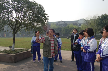 本次活动还有幸请到了我校杰出校友——成都民俗学会副会长兼秘书长  ,芙蓉古城文化顾问赵添成先生。赵先生声情并茂的讲解,使我们对芙蓉古城有了更深的了解,它以川西民居为主,同时融入江苏民居、云南民居、唐风建筑等中国传统建筑精髓而成,由四合院型的建筑群组成,“芙蓉古城绝不是简单的摹仿,而是要把历史的精华注入到现代生活中去”。更重要的是赵先生使我们对老成都的历史、文化有了更深的了解,使我们更加热爱这座有深厚文化底蕴的城市!