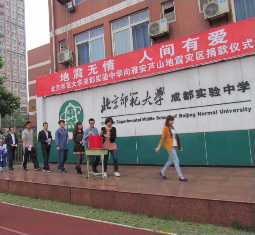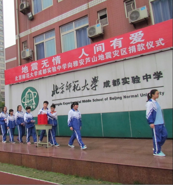 地震无情,人间有爱——北师大成都实验中学雅安芦山灾区捐款仪式