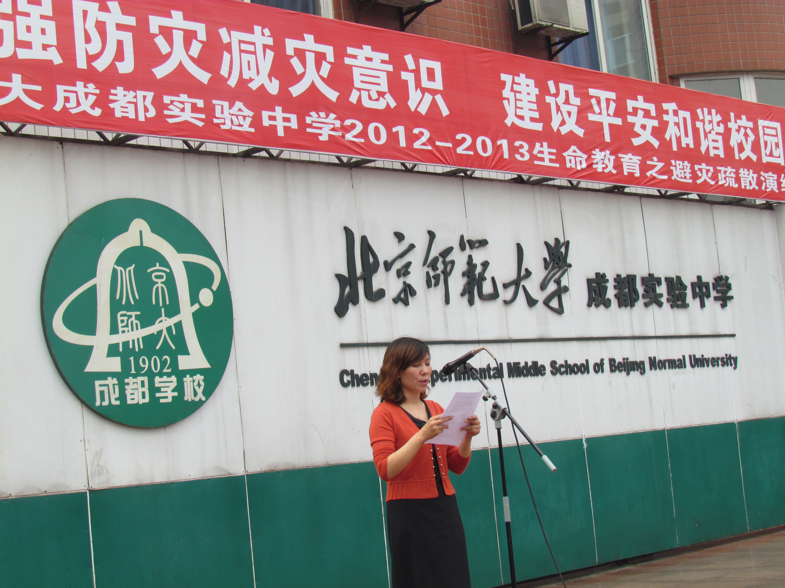 最后,魏月香副校长对4月20日到5月13日,学校所进行的生命教育系列活动进行了总结。她说,生命教育是我校德育工作的中心,本学期抓住“4.20芦山大地震”,“第五个全国防灾减灾日”教育契机开展了系列活动:4月21日晚对全体住校生进行了科学避震的教育;4月22日上午,全校师生行了敬畏生命、珍爱生命的主题教育;4月23日上午,“地震无情 人间有爱”向雅安芦山地震灾区捐款仪式,我校近2000名师生此次共计捐款51492元整;4月27日8时02分全校师生为“4·20”芦山7.0级地震遇难同胞默哀,这是对死难同胞生命的悼念、敬畏和尊重,也是对生者的精神慰藉;今天举行了避灾疏散演练。通过这些活动,让同学们懂得,对生命的敬畏,对生生命的关爱,认识生命的意义,提高生命的价值;树立避险的意识,提高生存的基本能力是珍爱生命的体现。