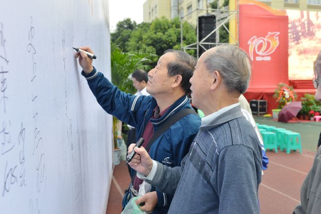 现场书法“雄关漫道”(高76届校友:朱映奇):