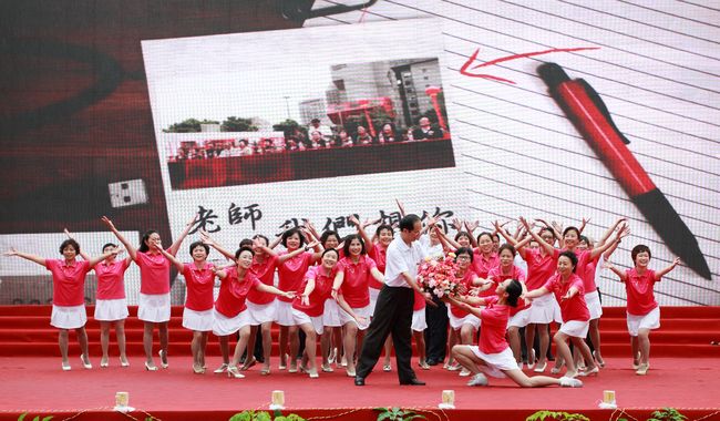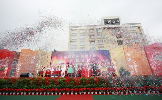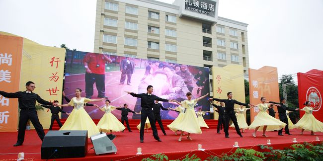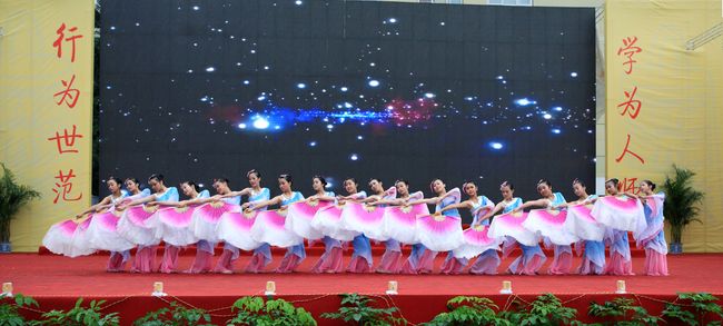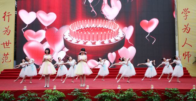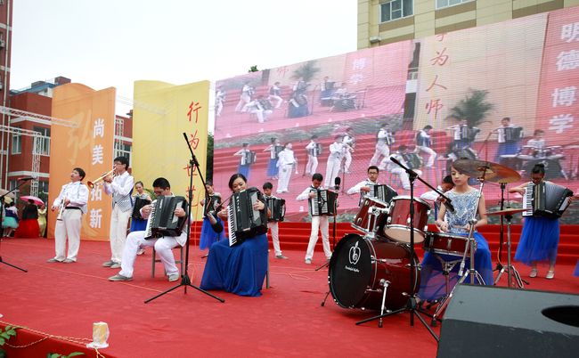 庆典上每一个节目都是精品,都有很强的艺术感染力。合唱《送别》刚唱出第一个乐句,台下的老校友已经眼含热泪。舞蹈、手风琴,独唱等等都得到了与会校友嘉宾的称赞。鼓队的同学穿着单薄的衣服站在细雨中,但他们打出了威风,打出了豪迈。台下的同学们秩序井然,坐在那里手都被雨水浸泡的麻木了,仍然坚持着与台上互动配合。庆典志愿者本着热情、细致、奉献的志愿者精神坚守在每一个岗位上,使各个环节的联络畅通及时。