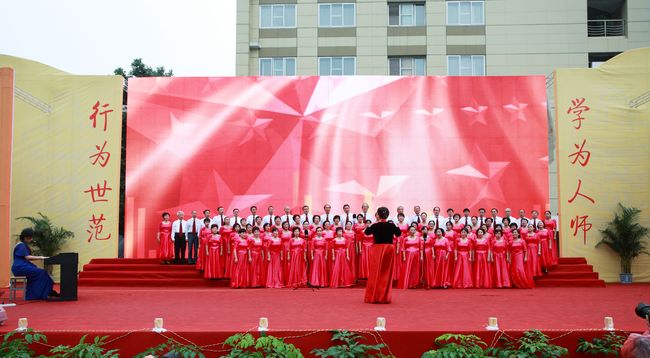 2.合唱《爱我中华》《走进新时代》(退休教师、校友合唱团)