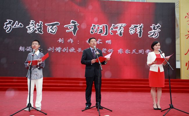 诗朗诵《弘毅百年,润泽群芳》(刘增利校长、阙楠老师、高2013级陈乐天同学):