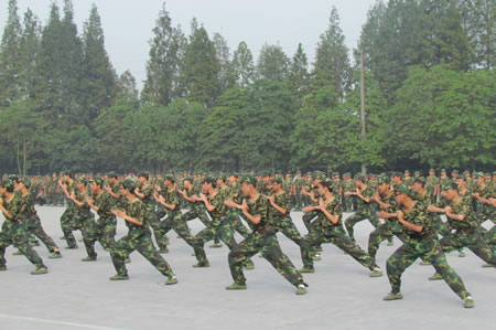2012年8月22日至8月29日,我校初2015级与高2012级共690名同学在成都市郫县国防基地参与了为期8天的军训。此次军训在于培养学生吃苦耐劳的品质,磨练学生顽强拼搏的意志,树立优良的作风,因此受到了学校领导与军训基地方面领导的高度重视。