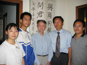 采风文学社 张智宇 2004年9月9日下午,在“追寻名师、名校友成长的足迹”活动的号召下,由校团委组织,我作为文学社社长和校学生会干部彭艳同学在刘增利校长和张继东助理的带领下,有幸拜访了我校荣誉校友——著名诗人流沙河先生。 十几分钟的车程,我们一行人来到了流老的住所,怀着兴奋、紧张的心情,我手捧着鲜花跟随着刘校长和几位老师,一步又一步地接近此行的目的地。当一个清瘦的老人把门打开后,当一张精神饱满面带红润的脸庞印入眼帘的时候,我立刻感到了一种特有的亲切感,忐忑的心情一下子就平静了许多。 和很多老人一样,流老有着一头斑白的头发;和很多老人一样,他亦满面风霜;和很多老人一样,他也穿着朴素;和很多老人一样,但却又和很多老人不一样,头发虽然斑白,眼睛却闪烁着智慧的光芒;慈祥的面容上饱含着生活的艺术与文学的浪漫;朴素的着装上,展现着文人特有的儒雅气质。 流老很健谈,当刘校长问候过他身体后,他便孜孜不倦地谈了起来。 一开始,流老便谈起了自己寻找中学老师的事情,由于很多年都没有联系,再加上各种事情,流老基本上与中学老师失去了联系,他便通过报社等新闻媒体和各方的努力梾寻找自己的老师,当他谈到自己的老师相继离开人世的时候,我从他的眼里读出了痛心、伤感和无限的思念。 我认真地记录着,随后,流老谈到了我们学校的历史,谈到了很多我不知道而且我相信我们学校很多老师,很多同学都不曾听到过的事,我们学校曾经是那么得辉煌,我越发感到自豪和骄傲,但我更佩服的是,流老先生对自己的母校了解得如此之深,如此之厚。 最后,他谈到了自己。 流老先生是1947年入读四川省立成都中学,也就是我校的前身。在23班甲组,流老每天6点半就起床,当时小彭插言道:“我们现在住校生也差不多6点半起床,有些人好要更早。”流老听了笑了笑,解释说当时的6点半是地方时,比现在的6点半早64分钟。我和小彭都有些惊异,流老带着一种自豪继续追忆着当年的点点滴滴。 更让我们惊异的是,流老先生当年只读了5各学期高中就跳级考上了川大农业化学系,并获取了考生中的第一名,可见流老先生当时学习是多么地认真、勤奋,也可见,当年我们的学校是非常优秀的。 流老先生还给我们讲了很多,回忆了很多,这些点点滴滴的故事让我们更多地了解了流老的成长过程。 当刘校长说起我校近况并谈到无人监考的时候,流老先生也兴致勃勃地谈起那时的考场,那时的无人监考,并谈起了自己就当年的考场而发表的一篇文章。我们听得很认真,也很轻松。流老还谈到自己第一次参加无人监考时因紧张而尿了裤子。我和小彭忍不住笑了出来,流老也笑了笑。 最后,作为彩风文学社的社长,我邀请流老作我们文学社的顾问,流老爽快地答应了。 我便拿出事先准备好的留名录,让流老为彩风文学社写一点寄语。流老也很爽快地答应了,捧着本子便走进了书房。 当流老捧着本子再次出现在我们面前时,我清晰地看到了陶渊明《归田园居》中的诗句: “池鱼思故渊”。 是啊,从流老先生的聊天中,我清晰地感受到了流老热爱生活的情感,这种情感强烈影响着他的创作生涯。 临走前,我们一行人亲切地与流老先生合影留念。 当流老先生渐渐消失于我的视线中时,他的思想正一点点地浸润着我的心田。 |