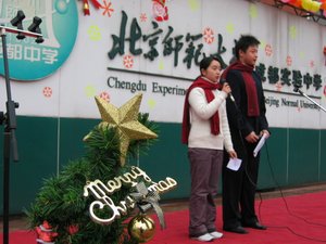 在新年即将到来之际,我校学生在全校英语老师的努力下,于12月24日开展了“迎新年、换新貌、说英语”特色庆祝活动。这天上午所有的英语课向家长及来宾开放,中午学生们进行英语游园活动,下午——4:00~5:30全校学生还进行了英语文艺特色表演活动。这台表演节目中,有英文歌曲演唱、英语话剧表演、英文诗朗诵,还有英语歌伴舞等,内容多样,形式丰富。节目最后,学校所有英语老师还上台和同学门一起演出,体现了我校良好的英语学习氛围,进一步推进了我校英语教学特色,在丰富校园文化生活、培养学生学英语、说英语、用英语的良好习惯的同时,也提高了学生的英语能力。
