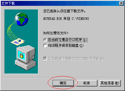 | (2)在弹出的对话框中选择“在当前位置运行该程序”,点击确定,如右图; | ![]() |