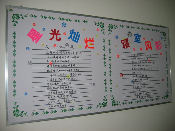 学生寝室文化墙由学生自行设计,楼道板报由学生收集资料,半月一期。
