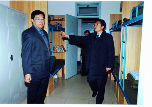 2003年11月13日校长刘增利陪同国务院政策研究室社会发展司司长张大平视察我校学生公寓