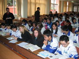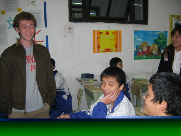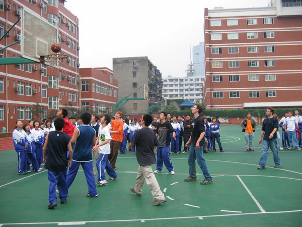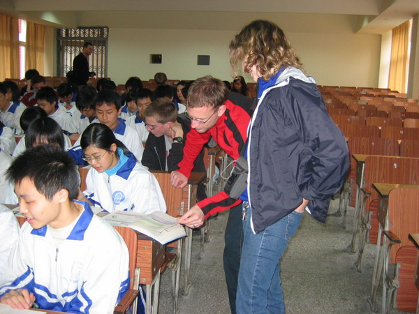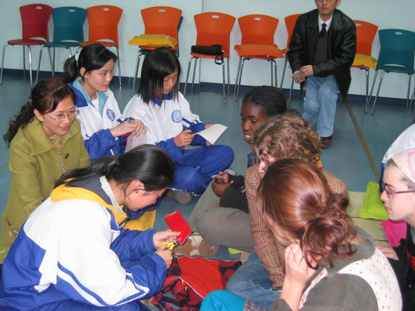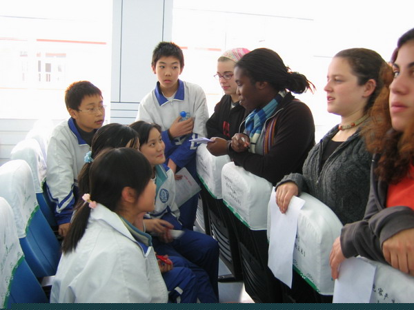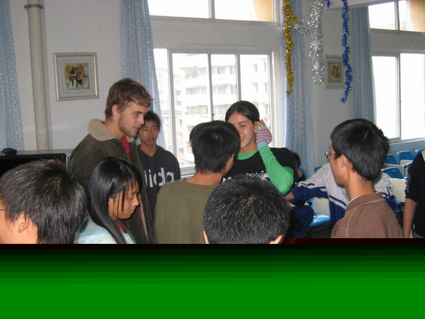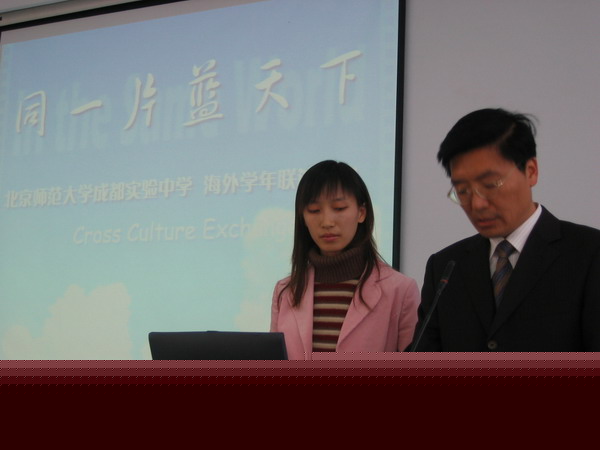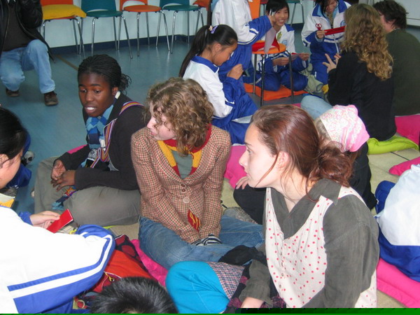 2005年11月14日下午,北京师范大学海外学年学生来到我校,与在校学生进行面对面的交流,并举行了友好的联谊活动。此次活动共有54名外国学生参加,他们均是从美国前来学习中国文化的高二学生。
