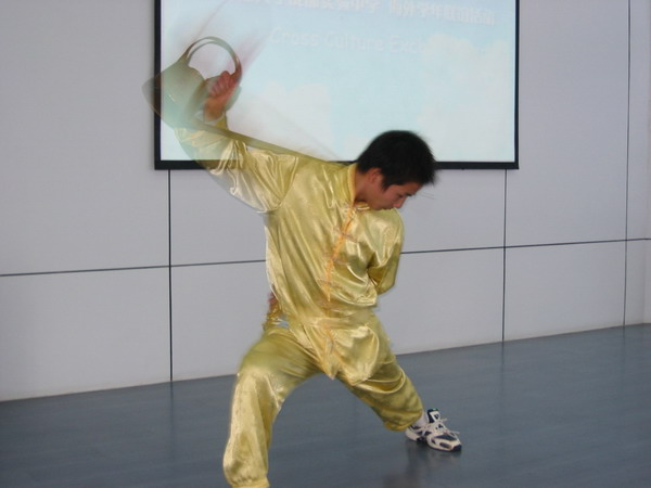 在简短的欢迎仪式后,活动分为四部分:课堂交流、中国传统文化展示、歌舞互动、活力青春等,四部分同步开展。
