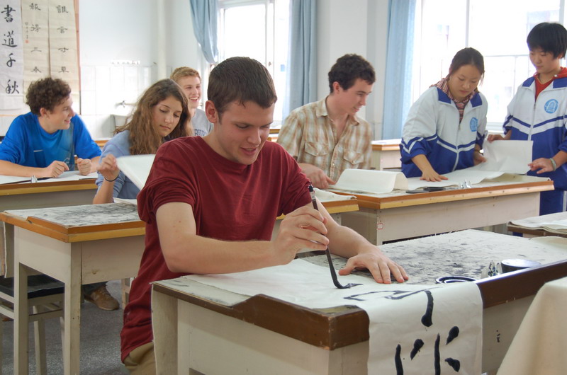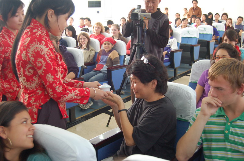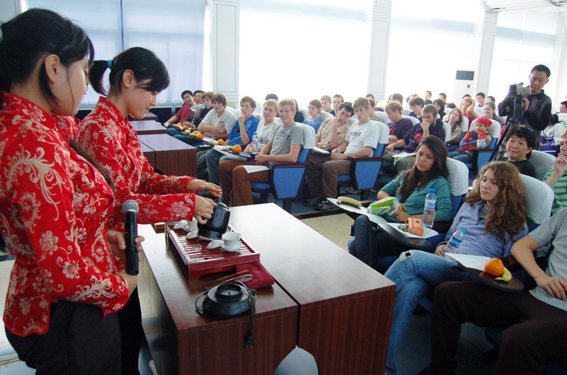 2006年11月13日,我校迎来了北京师范大学海外学年的60余名学员,不同国籍、不同肤色的中学生在我校学术报告厅欢聚一堂。在欢迎仪式上,我校张玉萍副校长致辞对海外学年师生的到来表示热烈的欢迎,随后,海外学年的教师代表在讲话中对我校的热情、真诚表示了深深的谢意。一场跨越国界的联谊活动在友好、融洽的氛围中拉开了序幕。欢迎仪式后,海外学年的学员参加了由我校精心设计的课堂交流、书法赏析、手工制作、品位中国等系列活动。在整个活动中,海外学年的学员与我校学生时而用英语交流,时而用中文交流,将“理解、友谊”体现得淋漓尽致。一年一度的联谊活动,不仅为我校学生提供了良好、充分的交流、学习空间,更是增进了各国学生之间的友谊。 |