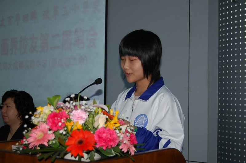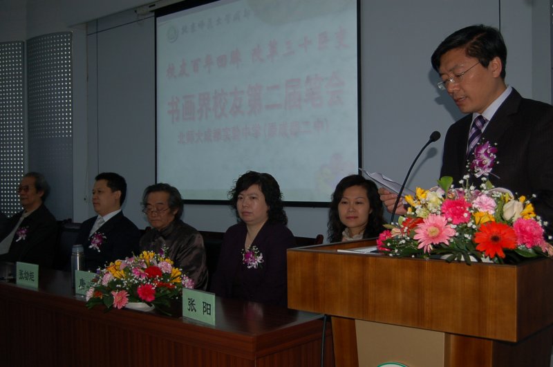 3月29日上午,北师大成都实验中学书画界校友第二届笔会胜利召开,此次笔会的主题为“百年校友回眸,改革三十巨变”。30余位享誉海内外的著名书画家校友张幼矩、邱笑秋、殷茀康等齐聚一堂,我校优秀的美术教师、文化艺术教育指导专家,有着“邵牡丹”美誉的邵仲节老师也参加了此次笔会活动。成都市政协副主席杨兴平,成都市教育局社管处处长唐萍,锦江区政府教育督导室主任张阳参加了笔会开幕式并观摩了现场笔会活动。