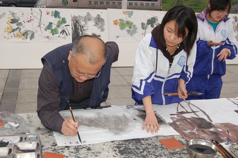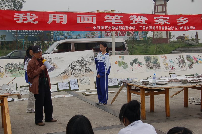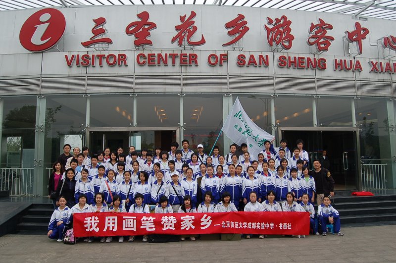 2008年4月26日,北京师范大学成都实验中学组织百余位在校学生和书画界校友,来到锦江区三圣乡“五朵金花”进行户外写生活动。此次写生活动主题为“我用画笔赞家乡”,活动口号为“改革三十巨变,校友百人写生”。此次活动是学校纪念改革开放三十周年、迎五·四系列活动之一。旨在让学生通过实地观摩、写生,直接的体会改革开放成果,特别是给农村带来的变化。活动邀请了部分书画界校友到场指导学生写生,三圣乡街道办和当地负责同志给予了活动大力支持。