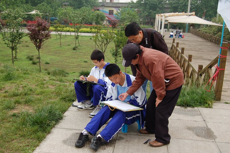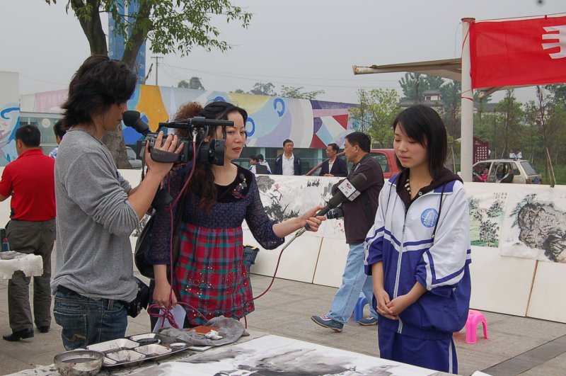 同行而来的多位校友在现场指导小校友们选景、构图、作画……在接受电视台采访的时候,同学们也谈到了校友的点拨,让自己有了更大的提高,“学无止境,贵在坚持”。