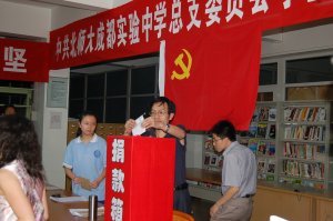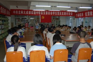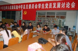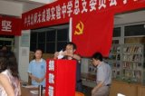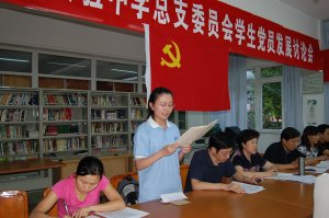 学校党总支根据这一战略思想于2008年5月30日晚19点,在图书馆召开了学生党员发展大会。会议的主要议题是讨论学校第一位学生党员赵依同学的发展问题。全体在职教职工党员、入党积极分子,学生入党积极分子,学生代表和退休支部党员代表参加了此次会议。