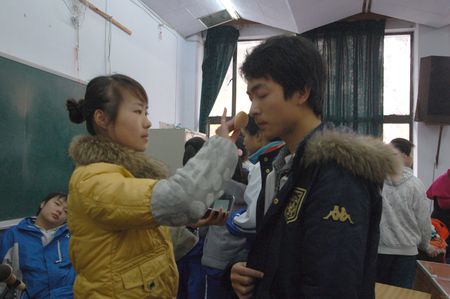 所有的工作人员于午饭后来到阶梯教室开始紧张有序的准备活动。化妆及换装,几位英语老师一直在协调着各项事情。