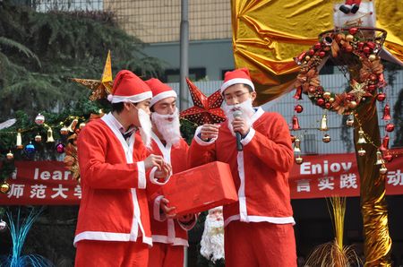 此次活动在新华校区操场进行,历时一个下午。学生表演形式多样,主要以歌舞为主,另外还有话剧、Beat-Box、吉他等等不同形式,内容丰富,并且涉及班与班的合作。初三年级以集体舞开场,顿时炒热了气氛;高二年级的‘NOBODY’五人组,以十分精彩的现代舞姿,配以快节奏的背景音乐,活力四射,赢得了全校师生的喝彩;舞台剧‘Mu Lan’运用了丰富的道具,加上其极富创造性的内容设计收到了较高的评价;初二年级的“斗舞”节目中,那个有着优美拉丁舞姿的浅绿色身影令人印象深刻;初一年级的节目‘Do Re Mi’中,同学们优美的乐器伴奏尽显才情;高一年级的Beat-Box内容新颖,颇受关注;还有学校‘English Drama Society’(英语戏剧社团)推出的舞台剧“白雪公主和七个小矮人”也十分精彩,无论是服装,道具还是配音方面品质都比较高;节目最后是初一年级同学们的大合唱,他们穿着校服,打着红领巾,在优美的圣诞歌曲中为这场才艺表演画上了圆满的句号。总的来说,这次活动中所有的节目都十分精彩,赢得了大家热烈的掌声。另外值得一提的是,在同学们的才艺展示过程中还穿插了三次抽奖活动,让节日的欢乐气氛更为浓烈。
