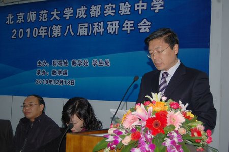 参与面广、影响深远 此次年会成都市教育局领导副局长左华荣、局长助理范春林、普教一处处长何荣、普教二处处长潘仲平,锦江区教师进修校副校长凌虹、中学室主任陈中华以及成都市教育科学研究院理论室副主任顾颉到会指导;北师大深圳南山附中的领导、北师大什邡外国语学校以及兄弟学校的老师们也参加我们的会议。