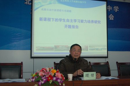 科研处张文勇主任代表学校课题组做了开题报告,成都市教育科学院的顾颉老师对课题进行了指导。为我们下阶段的研究工作指明了方向,发起了号召。历史与现实告诉我们:谁在自主学习能力的培养上研究更深入,谁就在更大程度上把握了教育教学的本质,谁就能做到事半功倍,谁要是对此问题漠不关心,研究不深入谁就会事倍功半,职业疲倦期提前到来,痛苦不堪……难了此教育生涯。