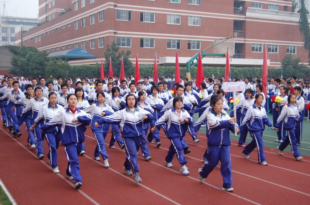 11月2日阳光灿烂,校园披上了节日的盛装。上午8时,全校师生1500余人齐集在学校运动场上,当刘校长宣布“运动会开幕”后,由学生组成的国旗、校旗、彩旗、鲜花队、裁判队、各班方队共30个方队迈着整齐的步伐,通过主席台接受学校领导的检阅。在刘校长致开幕词后,运动会就进入了全面的比赛阶段。