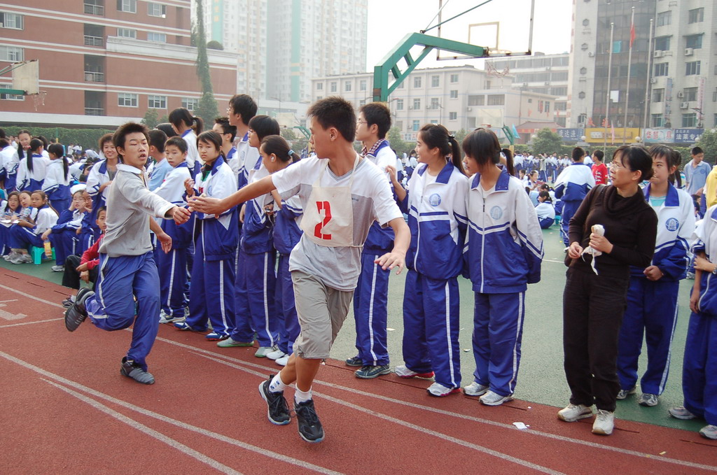 随后各个比赛项目有序开展。运动场上喊声不断,班级啦啦队组织有序;小记者争相投稿,投稿达千余篇;安全执勤小组分工细致,保证了运动会无任何危险事件和违纪事件发生。运动会上还专聘了23位学生裁判和工作人员,执法严谨,工作态度和水平毫不逊色于专业裁判。最后,在教职工与学生同时进行的4×100m接力赛中,结束了运动会的所有项目。