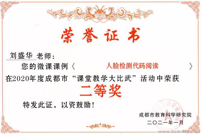 在成都市2020年“课堂教学大比武”活动的中,继我校教师在完课评比斩获成都市一等奖4个、二等奖12个、三等奖17个后,又传来微课评比的喜讯,杨娟老师参评的微课《形容词和副词的比较级》、程熹老师参评的微课《What's the matter with you? 》、吴霞老师参评的微课《线段、直线、射线的异同》、张思唯老师参评的微课《反比例函数的图像与性质(1)》、刘盛华老师参评的微课《人脸检测代码阅读》、邱太苹老师参评的微课《从三个方向看物体形状》等六个微课获得本次大赛的二等奖;谢婷老师参评的微课《托物言志与象征》、周芸老师参评的微课《美女蛇故事之神秘?——跟鲁迅学习讲故事》、张璇老师参评的微课《对比手法—以<邓稼先>为例》、李涵娟老师参评的微课《 Unit 1 What's the matter? Section B 2a-2c》、刘琢老师参评的微课《绘形摹神 品物观志》、袁蕾老师参评的微课《敬辞与谦辞》、熊继刚老师参评的微课《直线与圆的位置关系》、周华敏老师参评的微课《我国工业分布》、刘辉老师参评的微课《古代中国的农业经济》、黄霞老师参评的微课《代数式》等十个微课获得本次大赛的三等奖。