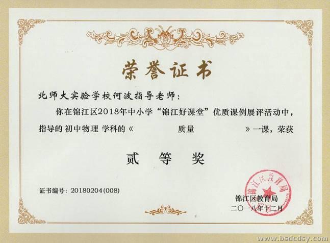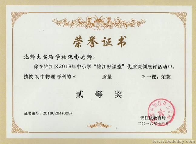 在锦江区2018年中小学“锦江好课堂”优质课例展评活动中,我校张彬老师执教的初中物理学科的《质量》一课荣获二等奖。何波、王光辉老师均获得指导教师奖。特向张彬、何波、王光辉三位老师表示祝贺。