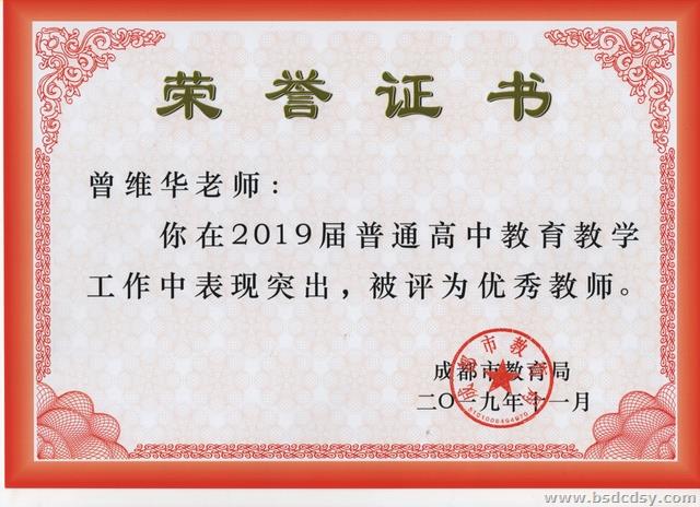 会上,我校2019届高中数学老师、班主任曾维华,英语老师高敏获得优秀教师表彰,廖宇老师获得2018—2019学年度优秀学籍管理员。学校获得“2018—2019学年度普通高中教育教学工作优秀学校”表彰。这是我校自2008年以来获得的连续第12个表彰奖励。