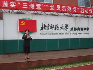 为进一步落实“三满意”要求,10月18日的朝会仪式上举行了落实“三满意”“党员示范岗”启动仪式。本次活动由王延玲副校长主持,杨延凤副书记作了讲话,李强老师代表全校党员作了简要发言,刘增利校长领誓下全体党员在党旗下庄严宣誓:率先垂范,勇于探索,敢于创新,甘为奉献,办人民满意的教育、创社会满意的学校、做学生满意的教师