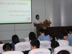 从4月底以来,我校组织了英语模仿演讲比赛,此次活动的目的:通过音像等媒体手段,模仿原汁原味英语的语音语调,感受原汁原味的英语,提升语言表述的地道与美感,提高英语听说的层次。此次活动参与面广,达到了活动的目的,激发了学生讲地英语的热情,全面提高了学生英语口语的表达能力;此次参赛选手有强烈的集体荣誉感。不仅使自己得到了锻炼,还承载着班级、年级的希望与梦想。此次参赛选手语音、语调虽然没有“原版”标准、但选手那富有激情的演讲、感染着现场的每一位听众,使学生在思维的深处产生了“说地道英语”的冲动。通过赛后选手和观众的带动,学生提高口语的练习正在成为学生的学习习惯。同时在此次活动中,从制定计划,到组织初赛、年级的复赛、全校决赛,学校的许多部门、年级组、班主任以及科任教师师都给予了大力的支持,尤其是英语组的老师们受到了更多的锻炼,实现了教学资源的有效整合,并把这种方式列为了英语教学的模一。
