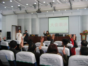 | 2006年1月20日下午,我校召开了首届教代会第十次会议。全体教职工和退休教师代表列席参加,海威教育集团总裁曹伟先生、副总裁潘骁骐先生到会并作了重要讲话,刘增利校长代表学校行政作了《承上启下,继往开来,为实现第二个三年的目标而奋斗》的年度工作报告和《2005----2008年学校发展规划》的报告;学校工会主席杨延凤同志作了《02-05年工会工作总结》的报告;招生办主任蔡怡作了《2006年招生工作原则性意见》的报告;财务主管蒋涛作了《2005年度财务工作总结》的报告。21日上午,教代会上各工会小组宣读了提案,然后进行了分组讨论,全体教代会代表对以上几个报告进行了举手表决,工会副主席李云作了大会总结,最后在庄严的国际歌声中首届教代会第十次会议胜利降下帷幕。 | |