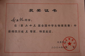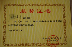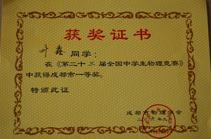 我校高2008级学生参加全国第二十三届中学生物理竞赛,取得了可喜的成绩:杜念通获全国三等奖、喻承懿获四川省三等奖、叶鑫获成都市一等奖、张雅丹获成都市二等奖。他们所取得的成绩离不开自身的努力和付出,更离不开老师的悉心指导,,是老师给与了他们知识和力量,我们祝贺他们的同时也看到了学校的进步和希望。