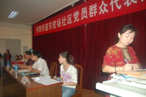 书院街道东较场社区在我校举行了党员群众代表换届选举会议