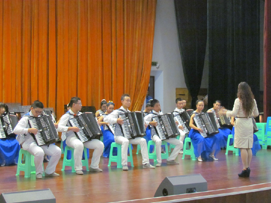 我校弘毅手风琴乐队精心准备的《土耳其进行曲》气势恢宏,节奏欢快。在蒋攀老师的指挥下,同学们用热情洋溢的笑脸和默契的配合给在场的评委老师留下了极为深刻的印象。此次演出成功的背后有老师们的艰辛付出,孩子们的辛勤苦练,同时也和学校领导的大力支持是分不开的。这次演出充分展示了我校对于艺术教育的重视,同时也是我校素质教育的丰硕成果。