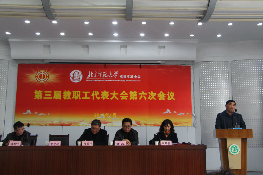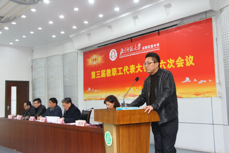 2016125——26日,学校召开了三届教代会第六次会议。本次大会得到了成都市教科文卫体工会、北师大的高度重视,北师大资产经营总公司总经理郭庆先生专程莅临大会并发表重要讲话,市教科文卫体工会胡艳桃主席到会指导并对学校下一步工会工作提出了要求。