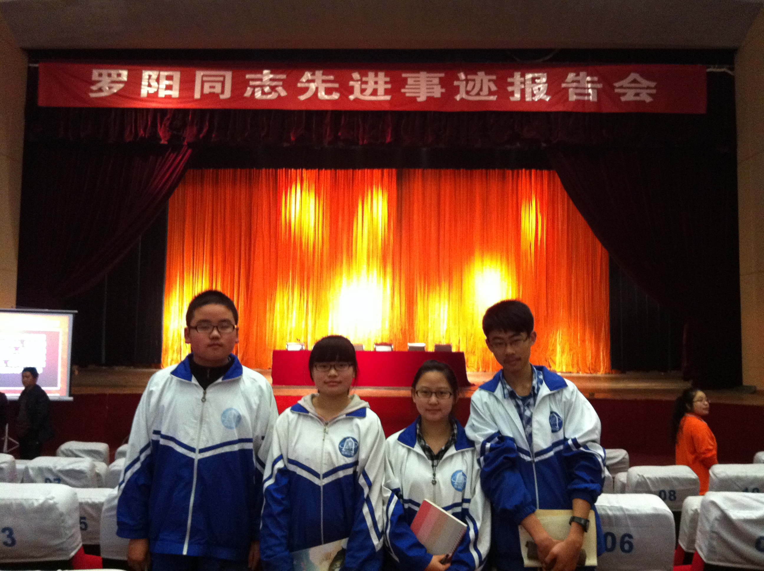 【直升年级2班 钱昊天 讯】2013年3月8日上午9时,我校四名直升年级同学代表在校团委韦旭颖老师的带领下参加了在四川师范大学成龙校区举办的“罗阳同志先进事迹报告会”。