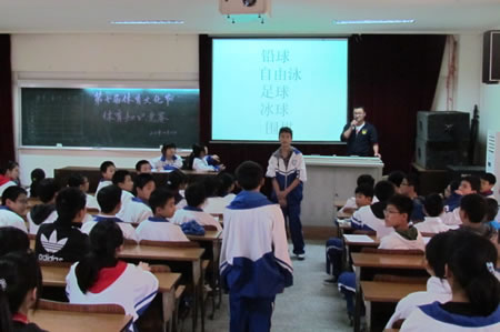 2011年10月27日中午,在阶梯教室由体育老师李涛组织开展了“初二年级体育知识竞赛”。 李涛老师通过对田径,篮球,排球等项目进行了提问。比赛共分为三轮,分别是“必答题”“你做我答”“规定时间答题”。其中,参赛选手和现场的同学们对“你做我答”这个环节十分的感兴趣。大致的规则是:在一分钟内,同学A面对屏幕用动作示意,不能做任何的提示。让背对屏幕的同学B猜出体育项目名称。在采访中,有同学说“这个活动十分有意义,自己本来就对体育感兴趣,所以才报名参加活动的,这次的活动也让她增长了体育知识。” 为时一个小时的活动接近了尾声,这次的活动促进了同学们对体育更深层次的认识,也让他们了解了体育中的一些有趣的知识,对体育更加的有兴趣,能够合理利用知识,健康锻炼身体。 【记者团:周可 刘琳琴】 |