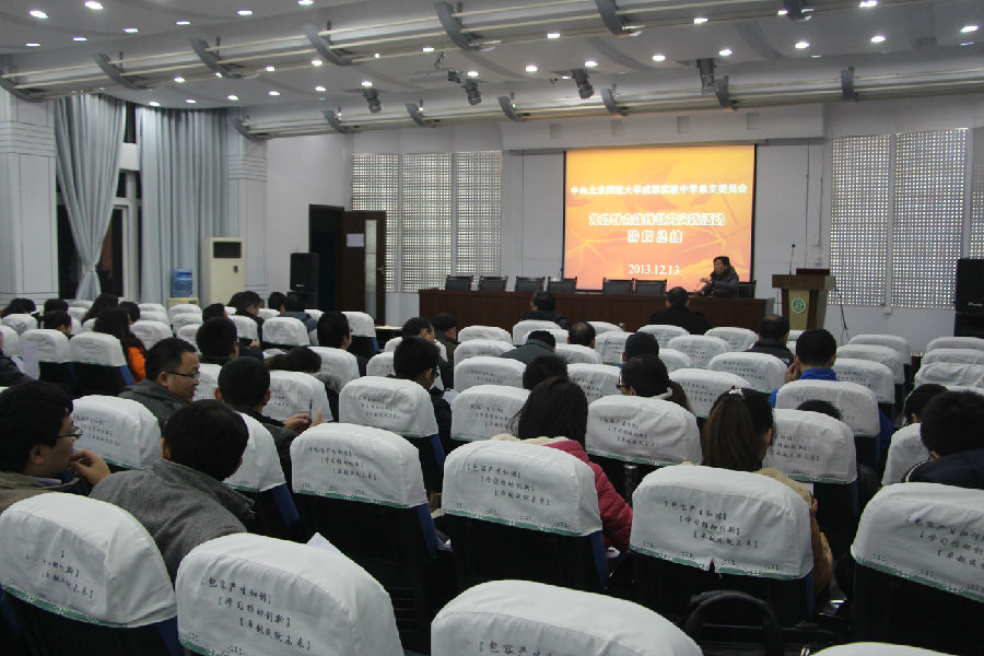 12月13日晚上,学校党总支组织全校党员教职工在学术报告厅认真学习党的十八届三中全会精神。会上,学校党总支副书记魏月香通报了党的群众路线教育实践活动一二阶段开展情况。刘增利校长作了《学习<决定>精神,推进学校变革》为主题的十八届三中全会精神专题辅导。带领全体党员认真学习领会十八届三中全会公报和《中共中央关于全面深化改革若干重大问题的决定》的精神,重点对大家比较关注的三中全会中有关教育领域的综合改革内容进行阐述。他特别指出,全体党员同志要把认真学习贯彻党的十八届三中全会精神作为当前和今后一个时期的重要政治任务来抓,与学校中心工作相结合,要谋划好学校进入新一个百年的发展规划。他强调学校下一步的发展重点在以下几方面推进:一是完善法人治理结构,修订学校章程,成立学校理事会,成立学校学术委员会,进一步完善教代会、校务公开制度,充分发挥家委会、校友会的作用,让学校办学更加开放。二是深入推进课程与课堂改革。三是以信息化、国际化推进学校教育的现代化。四是高度重视艺术和体育教育。并要求全体党员同志加强学习,不断提高自身素质,立足岗位,服务育人,将全会精神融入本职工作,务求实效,争做优秀教师,创办人民满意教育。
