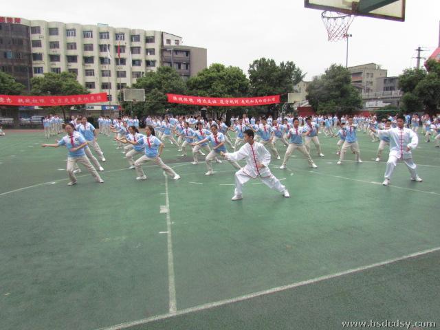 太极拳发源于中国,极富中国传统民族特色元素,是我校大课间长期坚持的一个运动项目。练习太极拳可以使同学们达到修身养性、陶冶情操、强身健体、益寿延年的目的。开展太极拳比赛不仅激发广大同学参加体育锻炼的热情,而且弘扬了我们中华民族的传统文化,更重要的是让同学们能在参加比赛的过程中获得快乐,赢得健康!