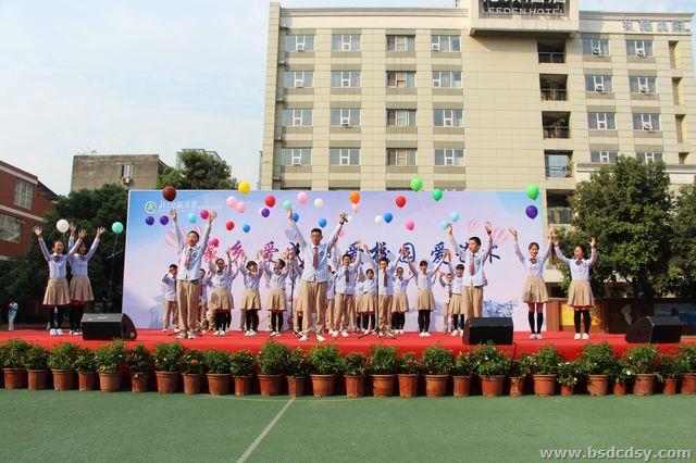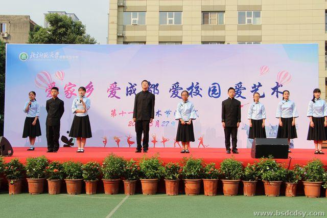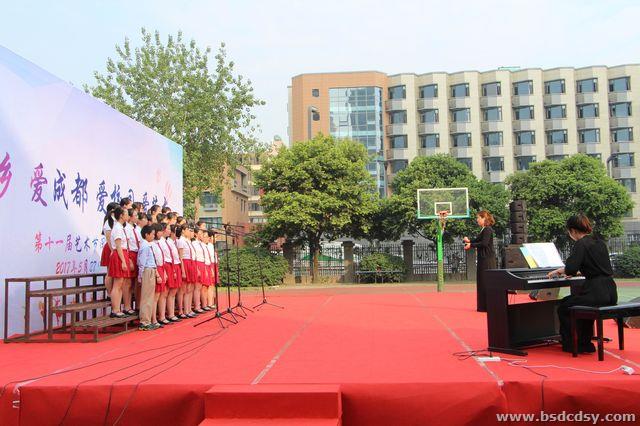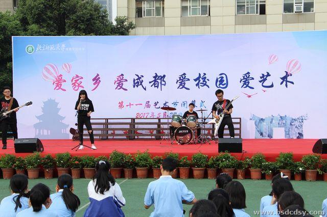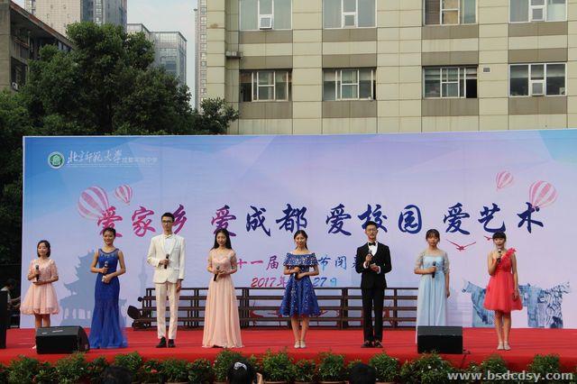 2017年5月27日在学校操场举办了第十一届艺术节闭幕式文艺汇演暨庆祝2017年“六一”国际儿童节活动。在汇演中,我校学子展现出独一无二的风采与魄力。听,是谁带来那“四季的问候”,踏着那“小步舞曲”缓缓走来;是谁在那康桥边取一首铮铮离歌;又是谁,用那青春的舞步,哼着属于我们青春的旋律青春的歌。我们相聚成都,成都,带不走的是最好的我们。观众的掌声伴随着青春的步伐从未停歇。演出过半,刘增利校长致辞,他希望同学们能以本次艺术节做为新的起点,为我校四川省艺术教育特色学校的旗帜继续增光添彩!同时也希望同学们珍惜时光,追求梦想,脚踏实地,健康成长。紧接着,学校校长刘增利,党委书记潘仲平为初一初二的同学赠送了节日礼物。