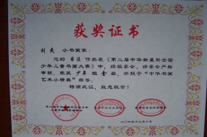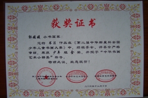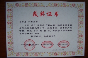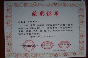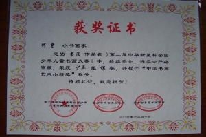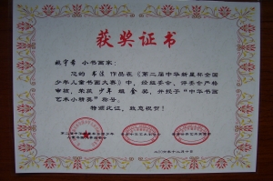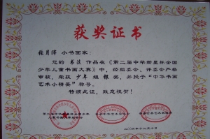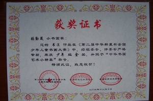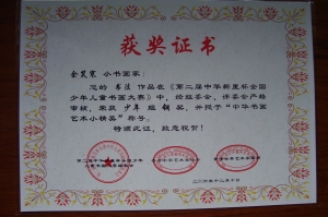 2006年12月我校组织了11名学生参加第二届“中华新星杯”全国少年儿童书画大赛,全部获奖,其中金奖5名,银奖3名,铜奖3名。获金奖的有:姚宇希、郭媛媛、蔡玉婷、刘    爽、张勤葳;  获银奖的是:张月渟、王泓力、何    雯    获铜奖的是:刘心宇、余笑寒、刘晶莹;指导教师余华忠获“优秀园丁奖”,同时学校获得“优秀团体奖”
