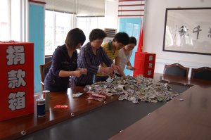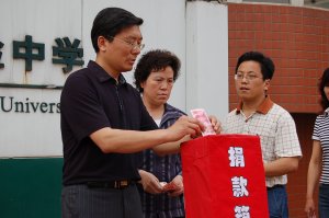 5月16日上午,我校全体教职员工和学生在操场举行了赈灾捐赠活动。学校工会根据15日工作会议的安排部署,首先接收了老师和同学们捐赠的衣物、棉被等生活用品。满满二十袋物品,共计近2吨。 在活动仪式上,大家首先对地震中死难的同胞默哀一分钟,然后高声齐唱了《义勇军进行曲》。刘增利校长就赈灾捐赠的意义发表了讲话,学校党政工代表和学生会会长都宣读了倡议书,号召全体师生众志成城、抗震救灾。在仪式上,师生们进行了现场的捐款活动,投入捐款箱一笔笔的爱心捐款不时引来全场的阵阵掌声。在活动的最后,初中各班举行了“红五月歌咏会”齐唱比赛,同学们激昂的歌声展现了“中国人坚强不屈的精神风貌”。 截止中午12点,工会统计我校共捐赠衣物、棉被等4101件,现金66315.20元(含30元港币)。部分物品已有志愿者车队直接运往灾区,其余捐赠品我校也已转交红十字会。我校的捐赠活动还将继续进行。 |
