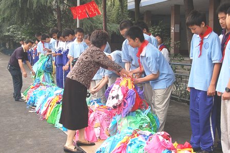 “六·一”儿童节当天,学校领导在朝会仪式时间向初2011级、初2010级的学生赠送了节日礼物。