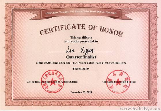 我校学生在中国(成都)·美国友城青少年英语辩论挑战赛中位列八强